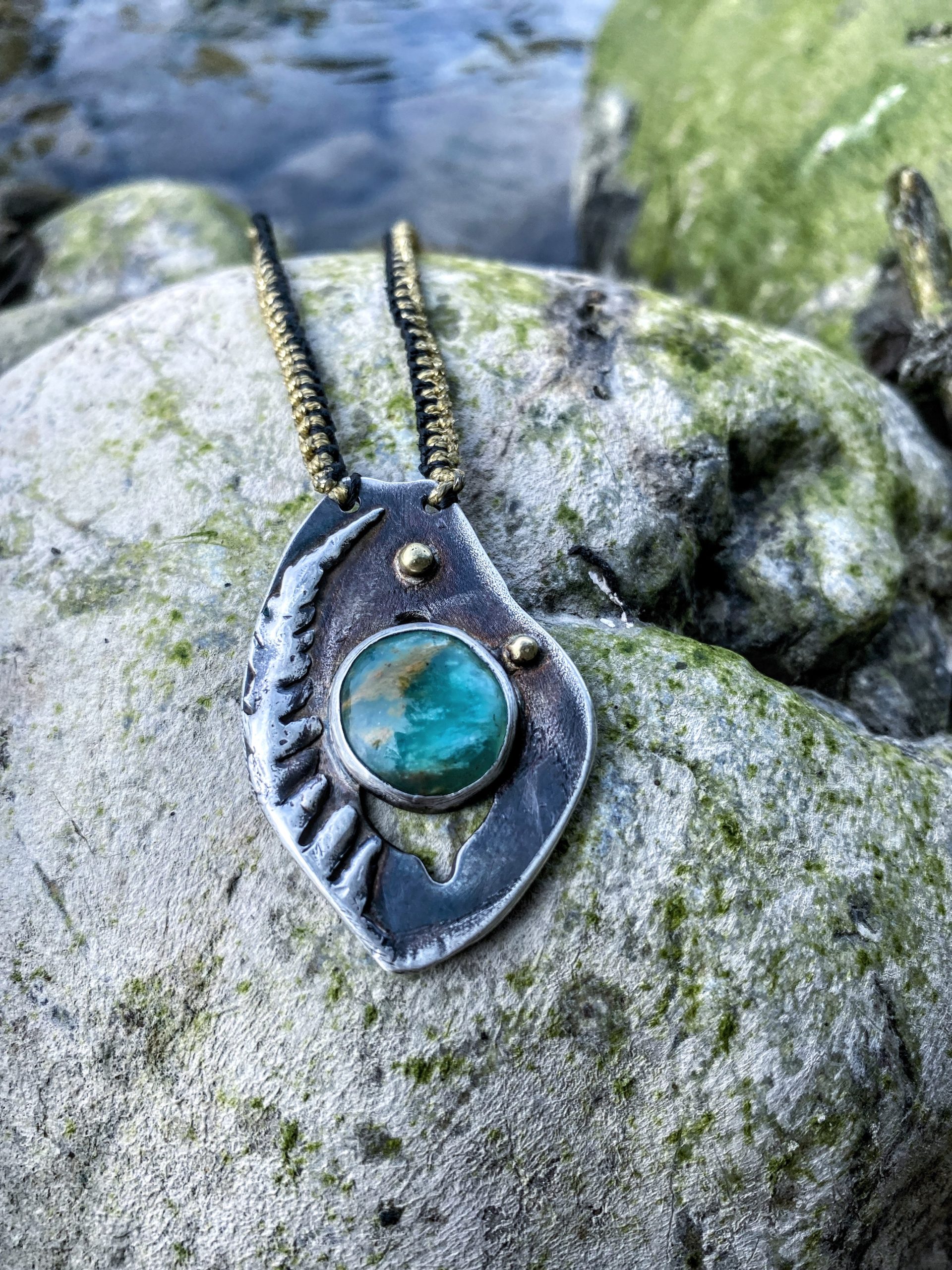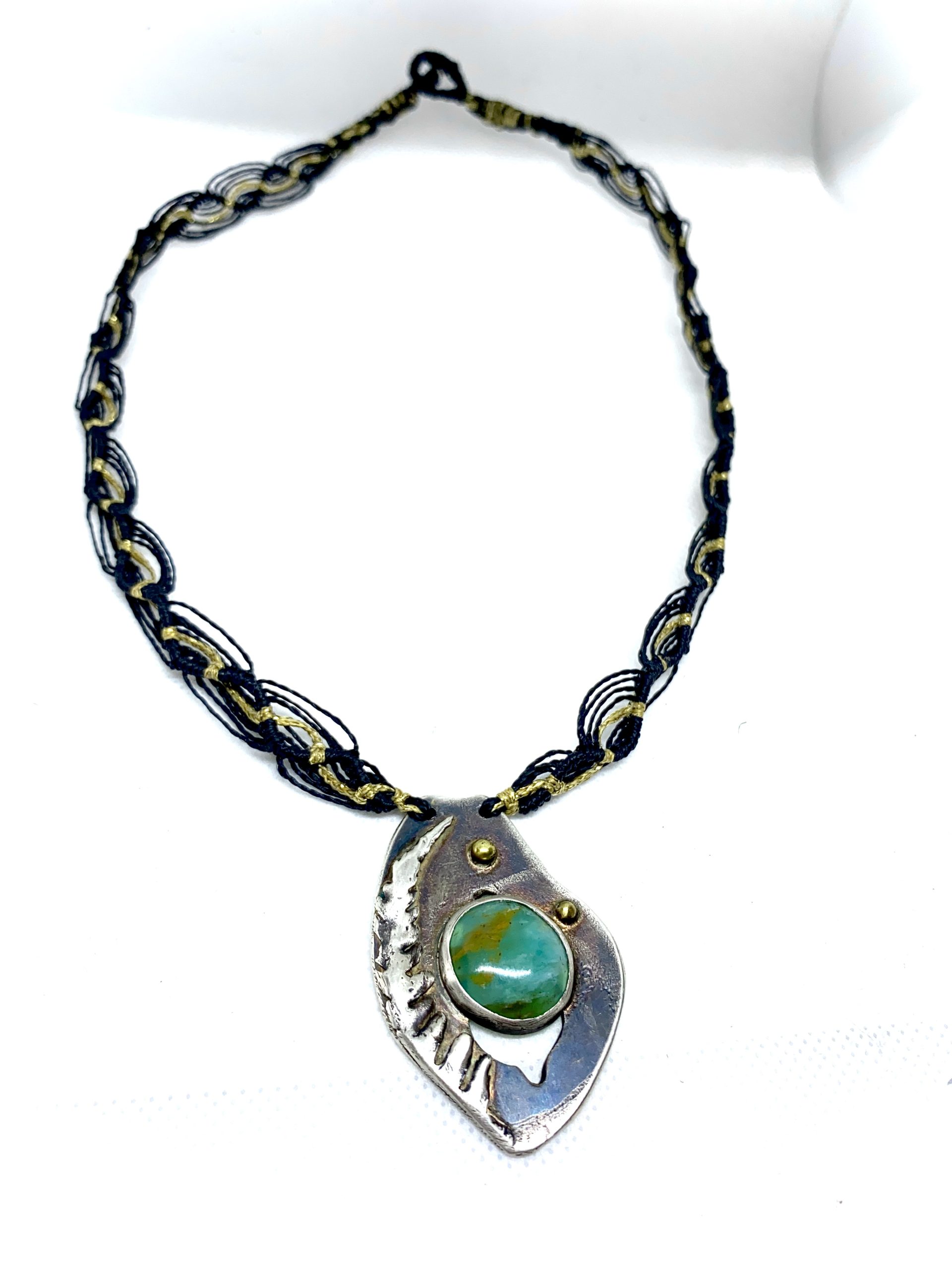 Materials: 925 sterling silver, 14k gold, Andean opal, waxed cord